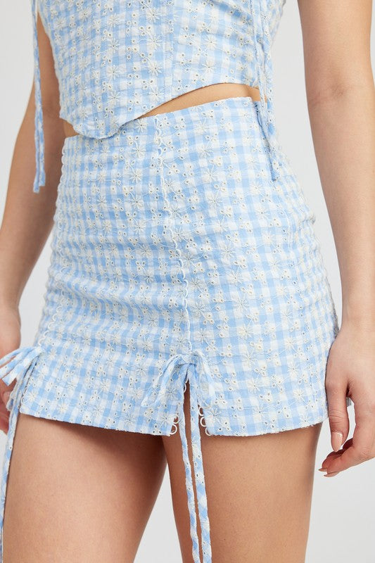 GINGHAM MINI SKIRT WITH DRAWSTRINGS
